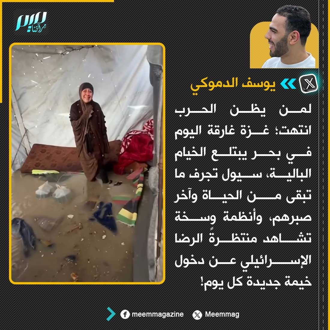 يوسف الدموكي: لمن يظن الحرب انتهت، غزة غارقة اليوم في بحر يبتلع الخيام البالية!
