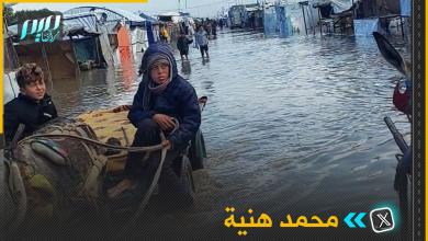 شباب غزيون يحاولون فتح مجرى لتصريف مياه الأمطار قر…